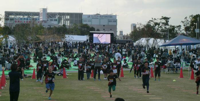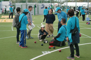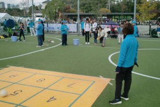 天王寺公園エントランスエリア「てんしば」において、大阪市スポーツ推進委員はスリーアイズとボッチャの体験コーナーを開催しました。どちらのブースにも400人を超える参加者が来られ、大変な盛況のなか皆さんが楽しんで行かれました。