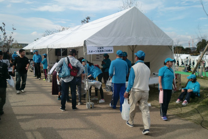 ブラインドサッカー・スポ進ストレッチ・スポ進活動報告・総合案内所など他のブースにおいても多くのスポーツ推進委員が従事しました。当日は4万人近くの来場者が来られましたけれども事故もなくOSAKAスポーツパーク2018を終える事ができました。