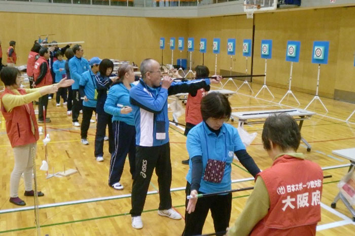 大阪市スポーツ推進委員全体交流研修会に於いて、4種目のニュースポーツ体験会が開かれました。