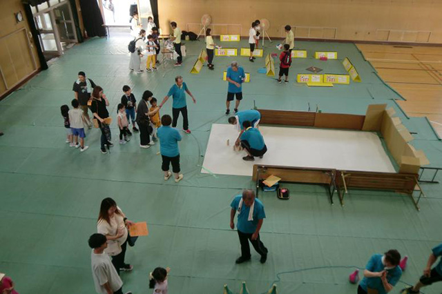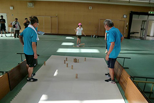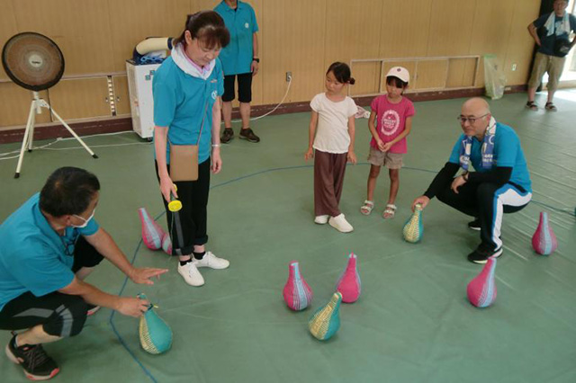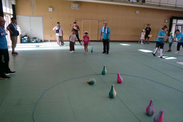 ニュースポーツとしてモルック1面、ガラッキー1面を設置しまして、開催から終了まで順番まちの列ができ途切れる事なく、暑い中多くの方に来場いただきました。